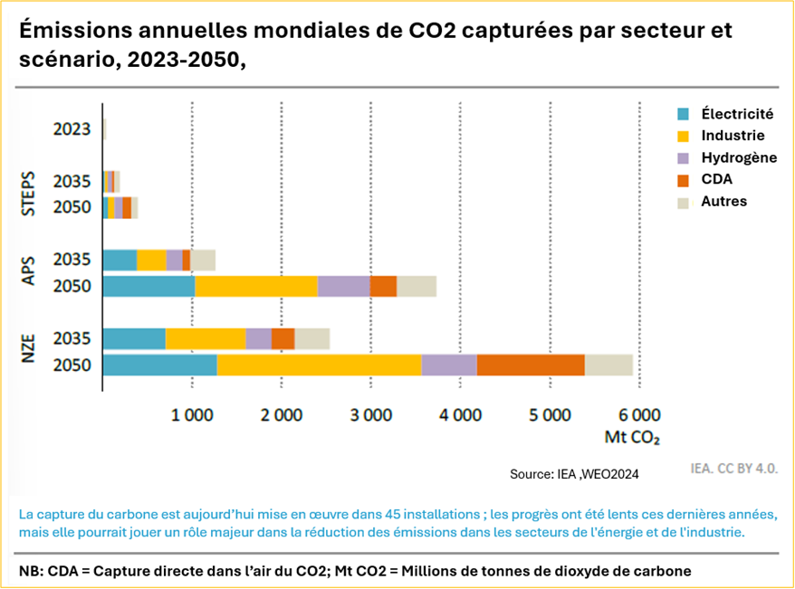 L’essentiel des projets annoncés d’ici 2030, les deux-tiers, concernent les économies avancées. NZE2050 préconise qu’au-delà 2035, deux-tiers des déploiements de CCUS se fassent dans les marchés émergents et les économies en développement où devraient se concentrer les industries à forte intensité énergétique.